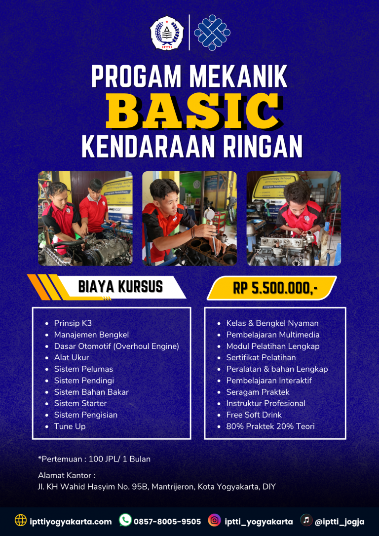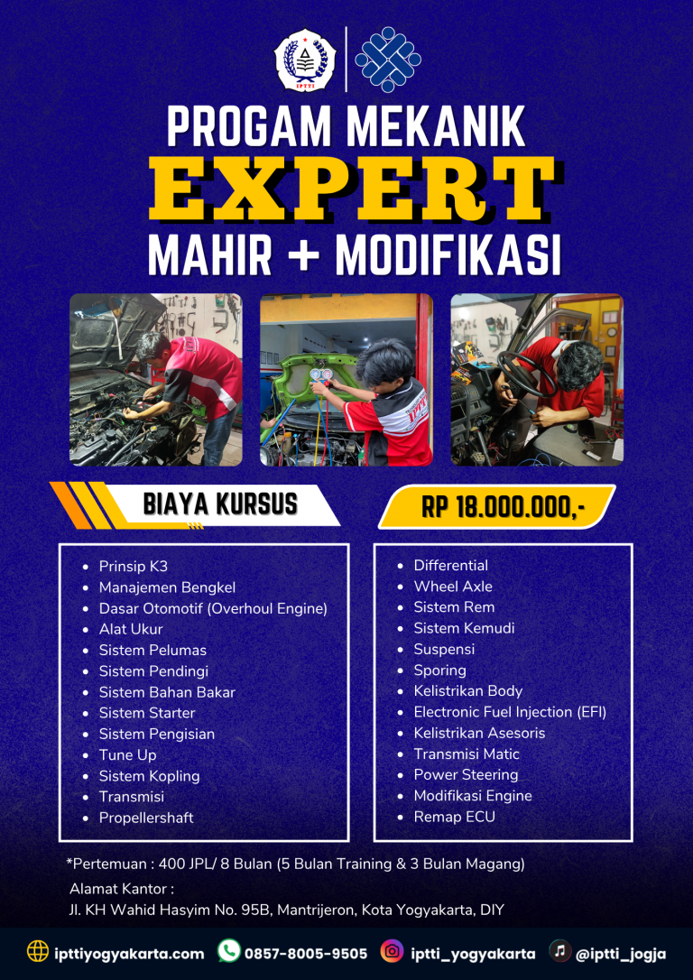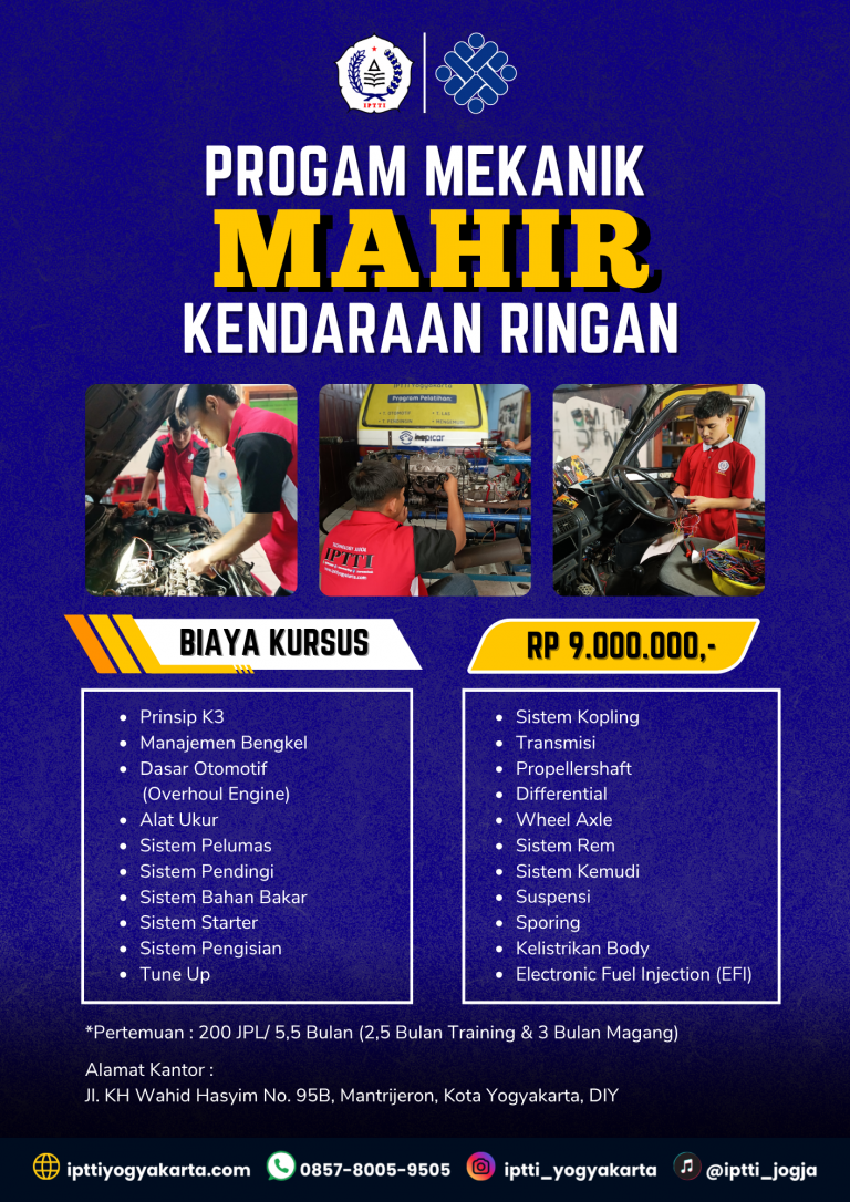 Tunggu apalagi kawan, segera gabung dan daftarkan dirimu secepatnya. Pastikan dirimu sukses bersama kami, cepat tidaknya kita sukses tergantung pilihanmu saat ini. Kuy kepoin lengkapnya paket otomotif apa saja yang ditawarkan di IPTTI Yogyakarta.